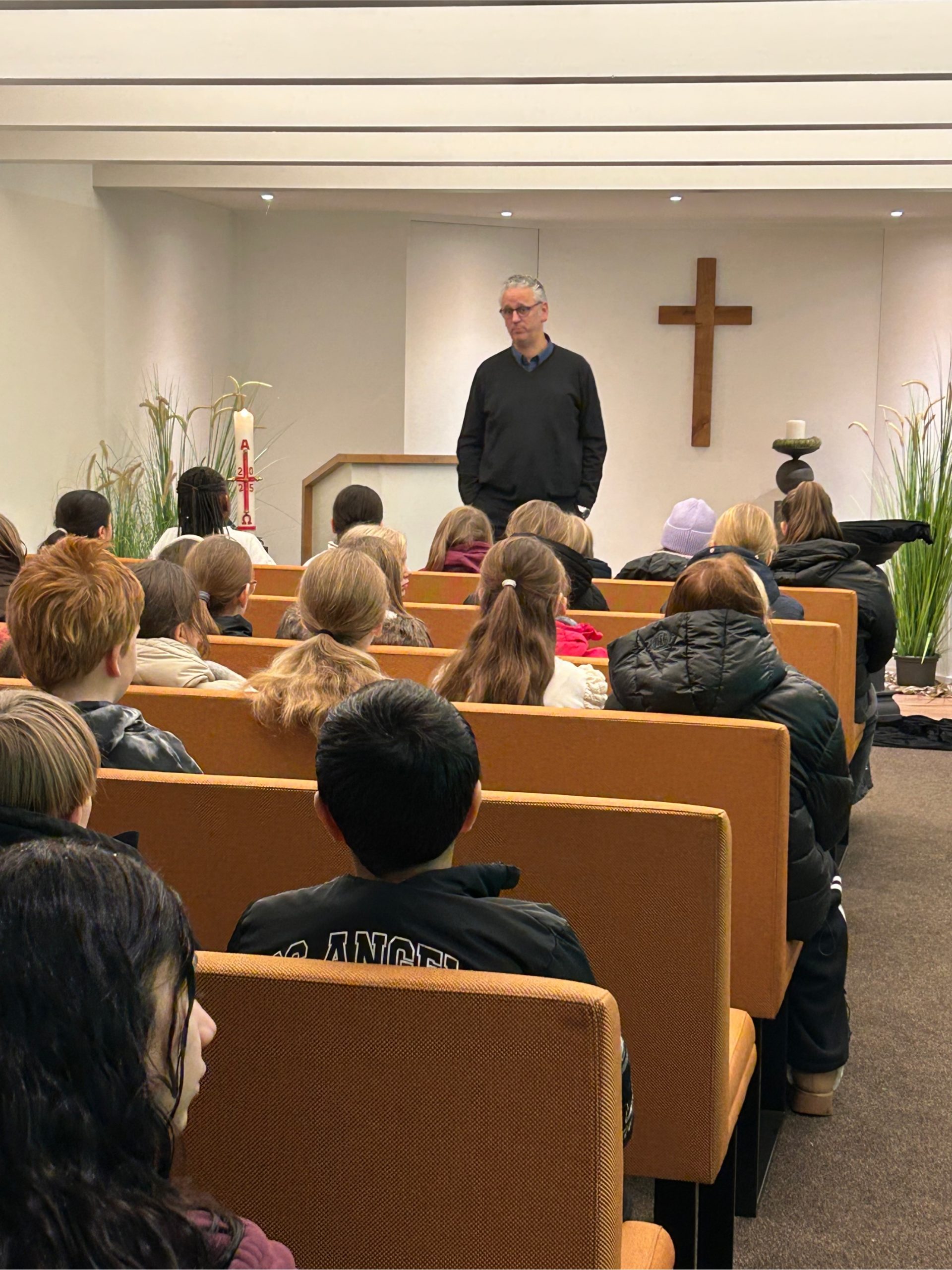 Spannende Fragen, die die Kinder der ersten Klassen in einer Kirchenbegehung im Rahmen des Religionsunterrichts auf die Spur kommen. Herr Pfarrer Backhaus führte die Klasse 1c am 09.10.2025 durch die St. Lucia Kirche, auch an Orte, die den normalen Kirchenbesuchern verschlossen bleiben.